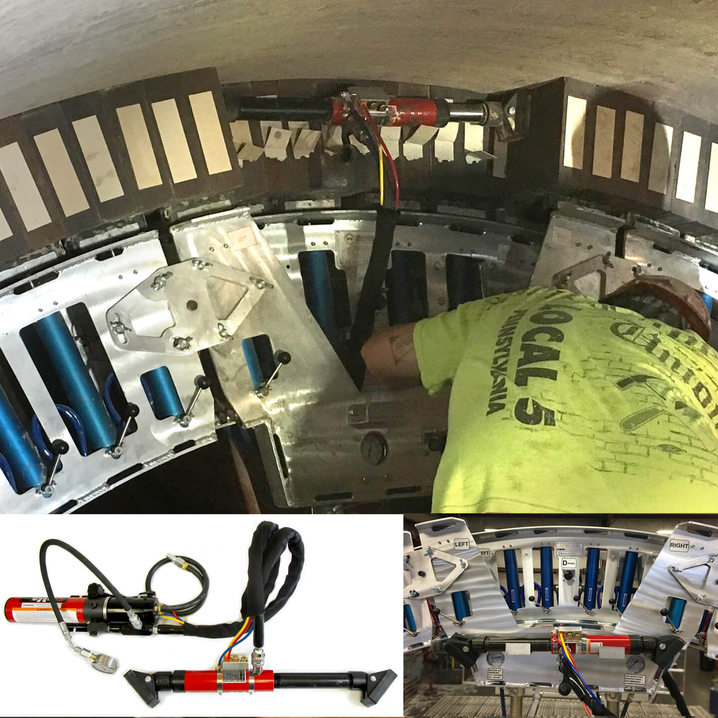 The keying jack is the most critical piece of equipment used in the tightening of each radial row of brick. The jacking must take place with each row prior to keying the row in place. When using one of our bricking machines, the keying operation takes place every 15 minutes.