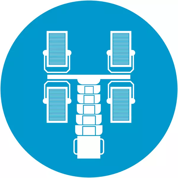 Up to 16 light trucks can be loaded onto a 40 ft trailer, while up to 20 can be loaded onto a 53 ft trailer. Upon delivery, the manual mast can be raised to a height of 7.5 m (24' 6") and remains stable in winds of 80 km/h. - HardHat® Chassis Technology